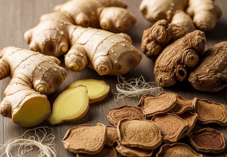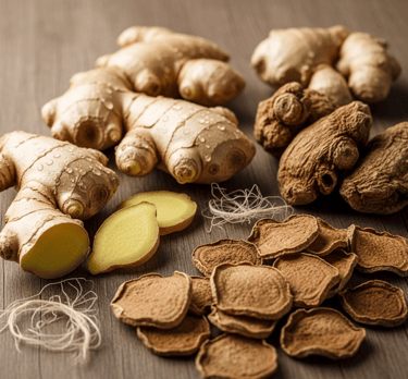 Fresh and dried ginger, sourced from trusted suppliers for quality assurance.
